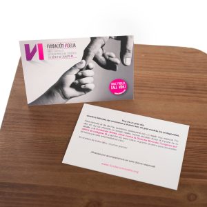 Tarjeta Solidaria: Con la imagen de nuestra entidad. Consulta nuestro catálogo, puedes personalizar nuestra tarjeta para celebraciones y días especiales. Medidas: 15×10 cm